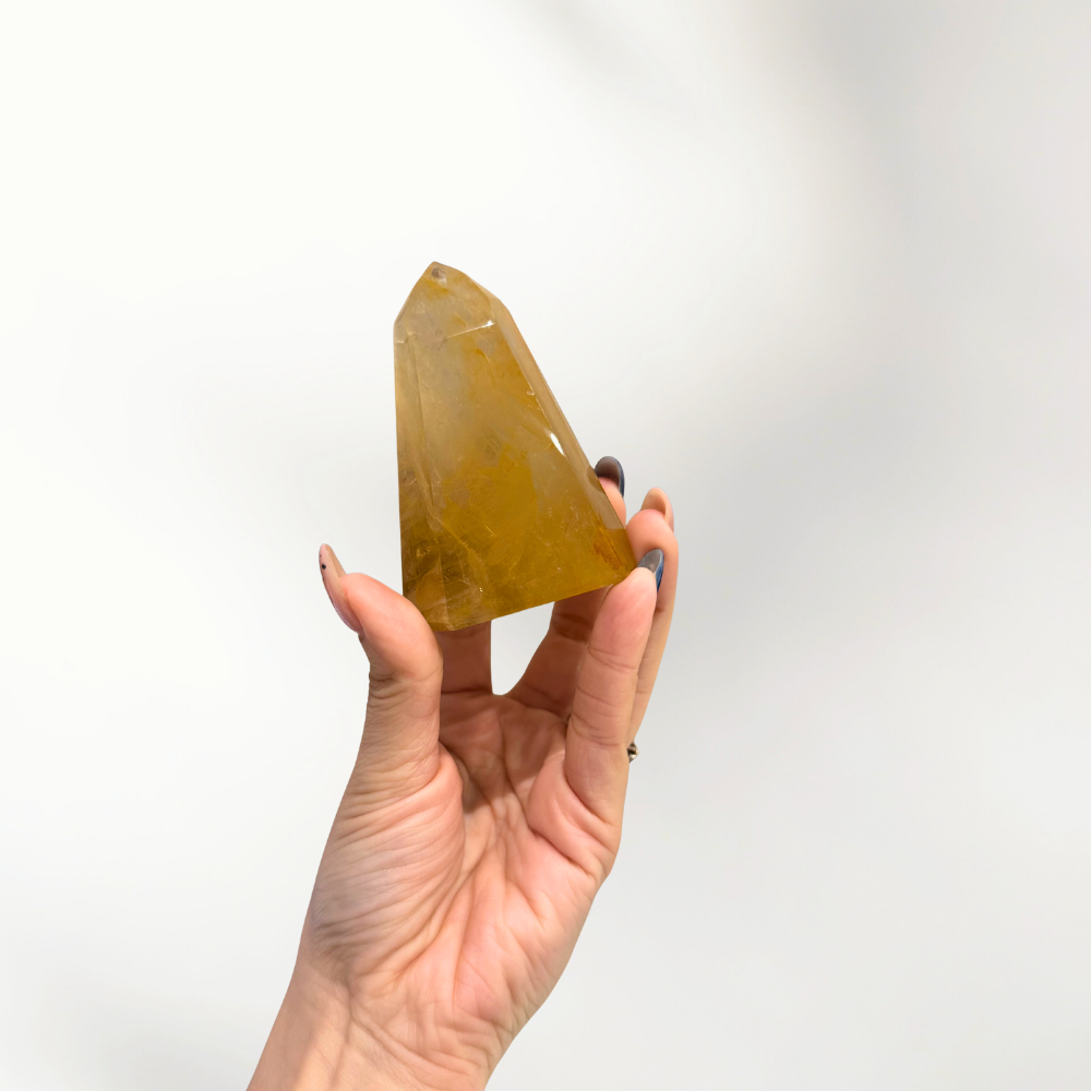 This 143g Golden Healer Quartz Point features beautiful golden yellow iron inclusions within natural quartz. It radiates a warm high vibrational and deeply healing energy. Renowned as a master healer this crystal enhances self confidence joy and spiritual expansion while soothing both the physical and emotional body.