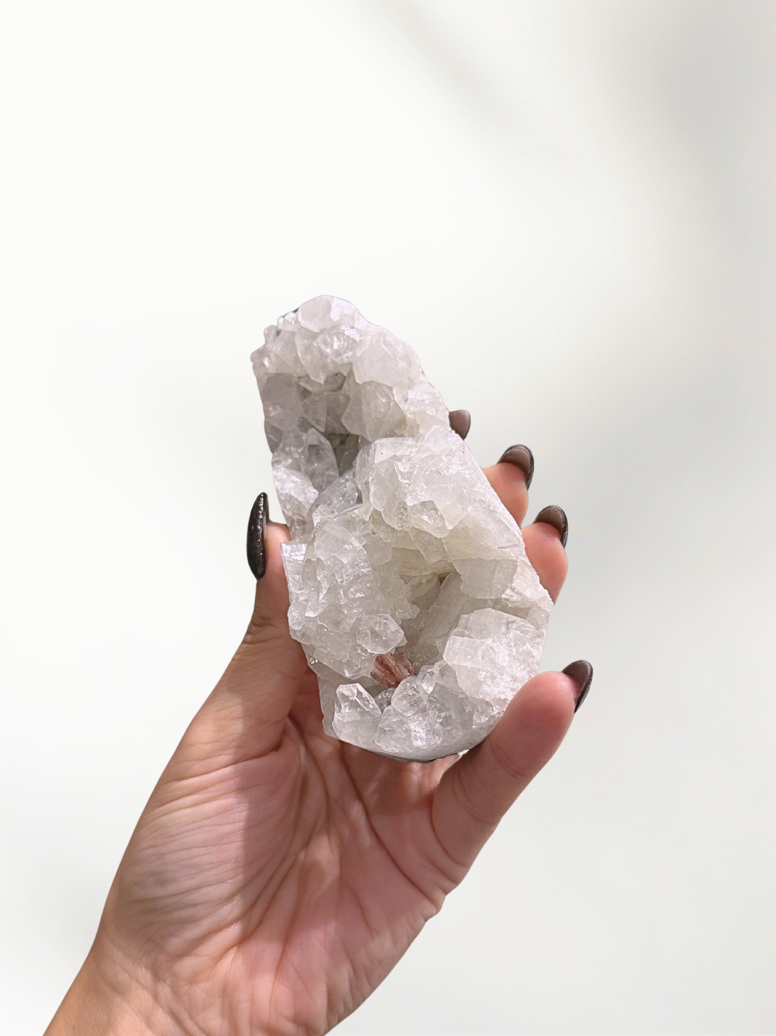 This Apophyllite crystal glows with pure, ethereal light – its shimmering surface reflecting the serene energy of the Moon. Known as a stone of spiritual awakening and higher guidance, Apophyllite connects you to divine wisdom, intuition, and emotional clarity. Its gentle yet powerful vibration uplifts your spirit, bringing peace, harmony, and trust in the universe’s flow.