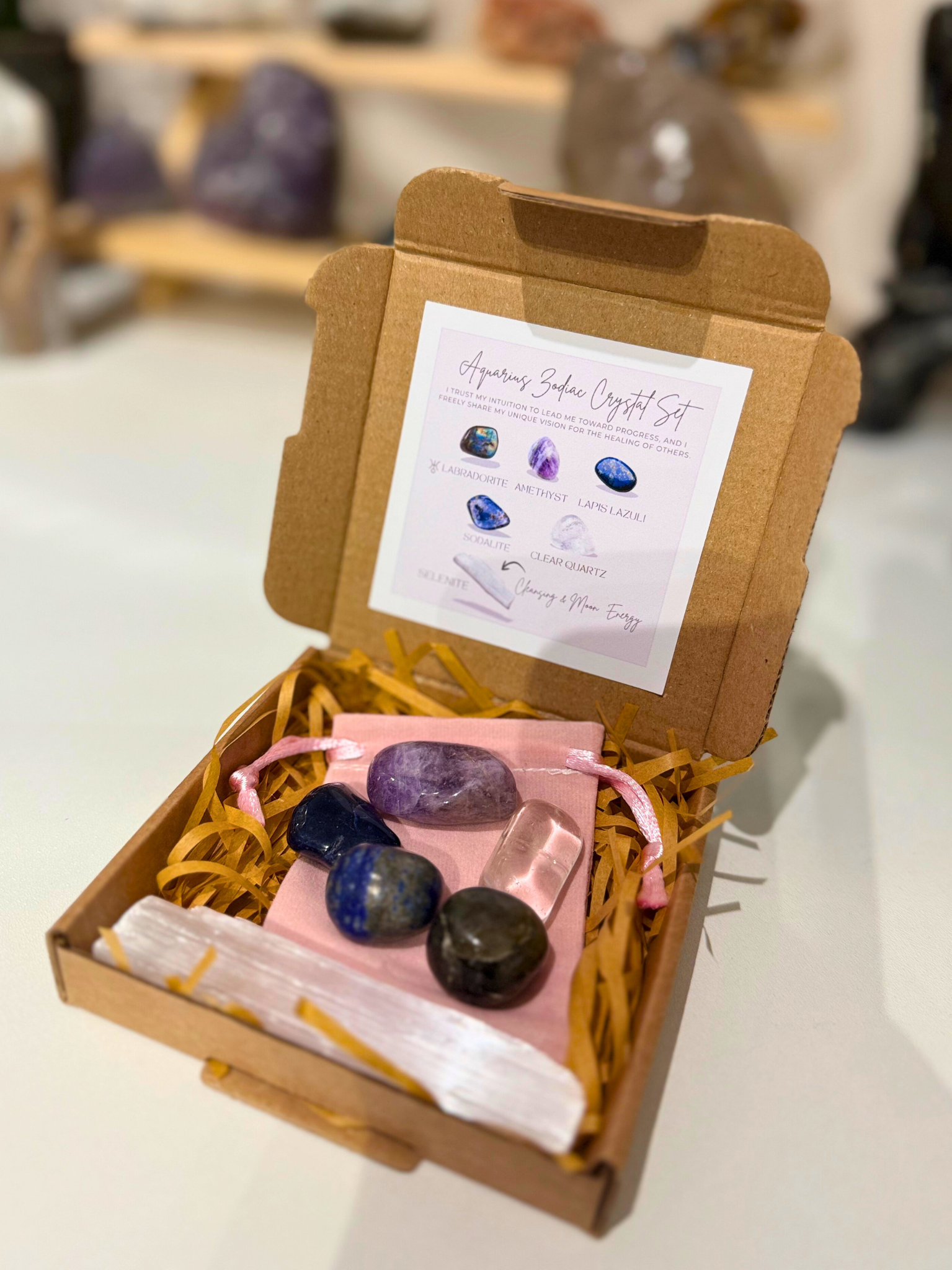A hand-picked crystal set designed to align with the independent, innovative energy of Aquarius. Whether you are an Aquarius Sun, Moon or Rising, these stones support clarity, creativity, authentic expression, and energetic protection – perfect for meditation, intention-setting, daily carry, or building a personalised altar.