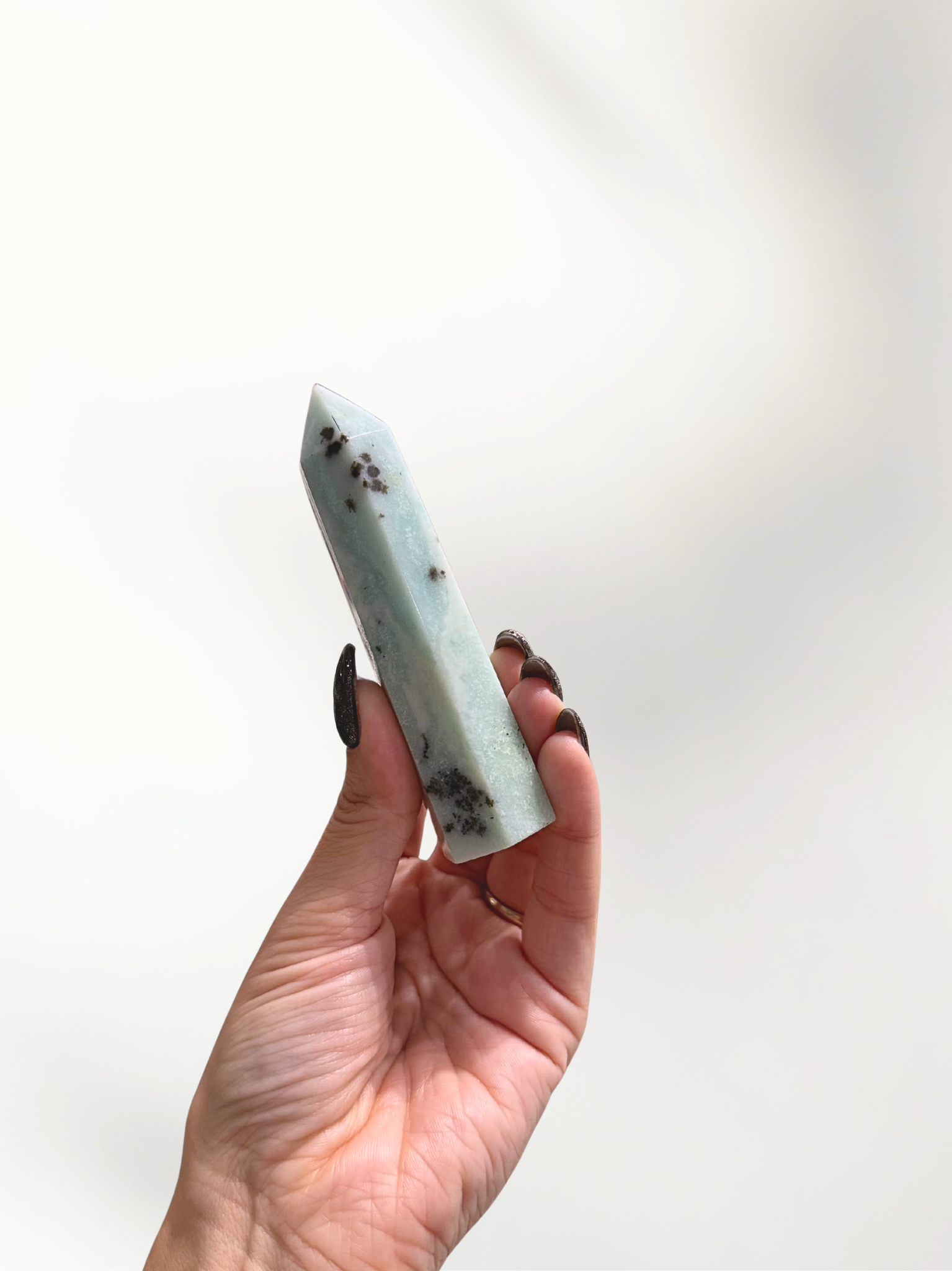 Place this tower by your bedside, on your altar, or in your workspace to invite peace and clarity. Use it during meditation or before rest to release mental clutter and open your mind to intuitive guidance. Pairs beautifully with Selenite or Blue Lace Agate for added tranquillity.