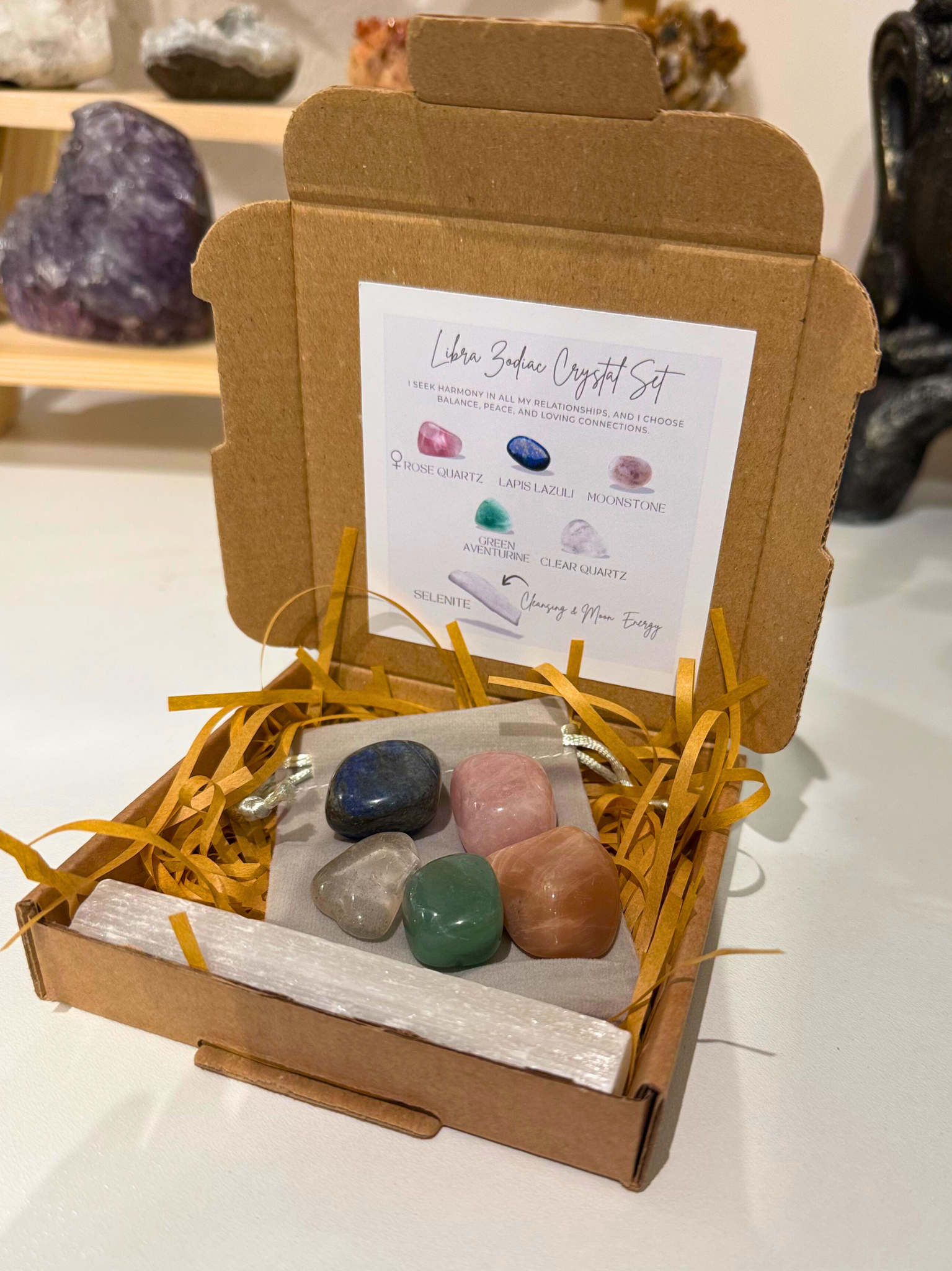 Libra energy seeks harmony, but true balance begins within. This set supports both sides of the scales — the open heart and the steady centre.