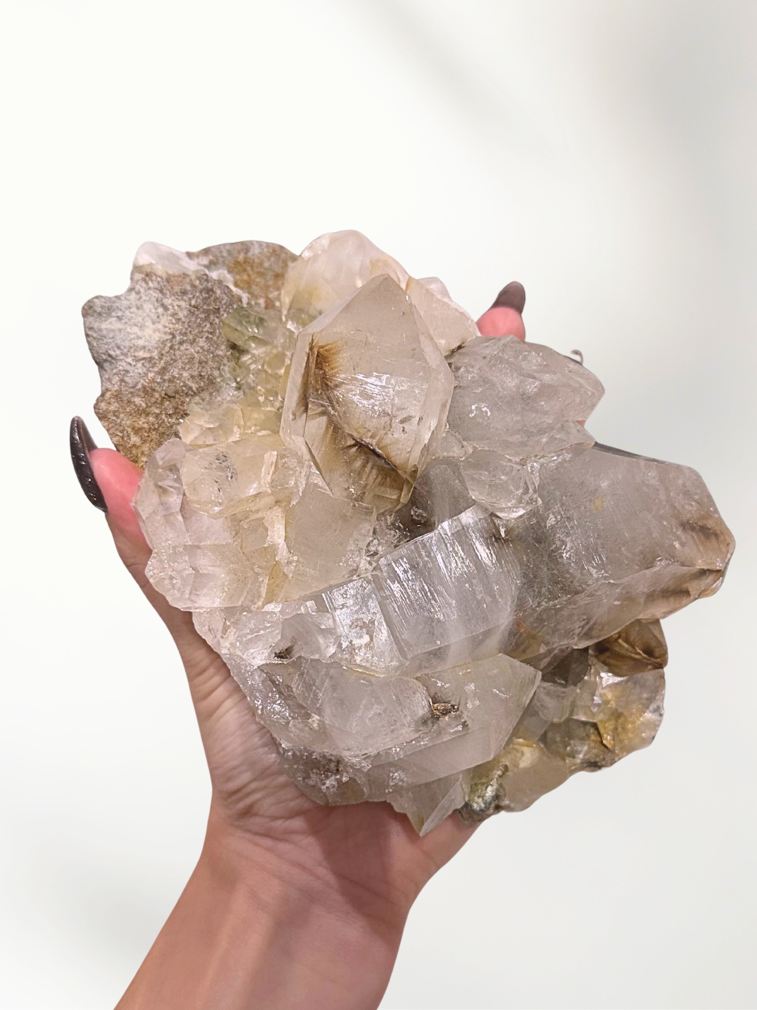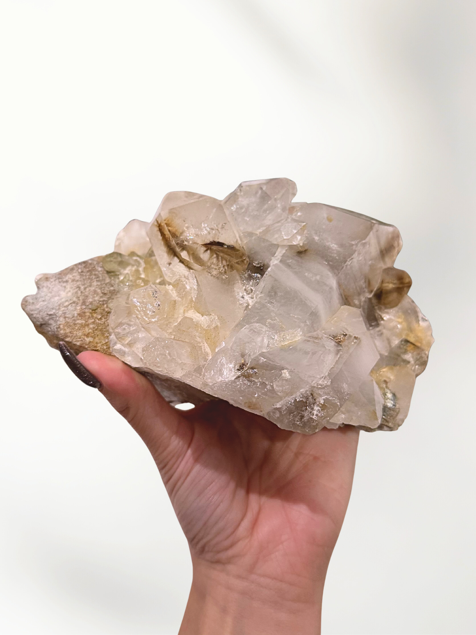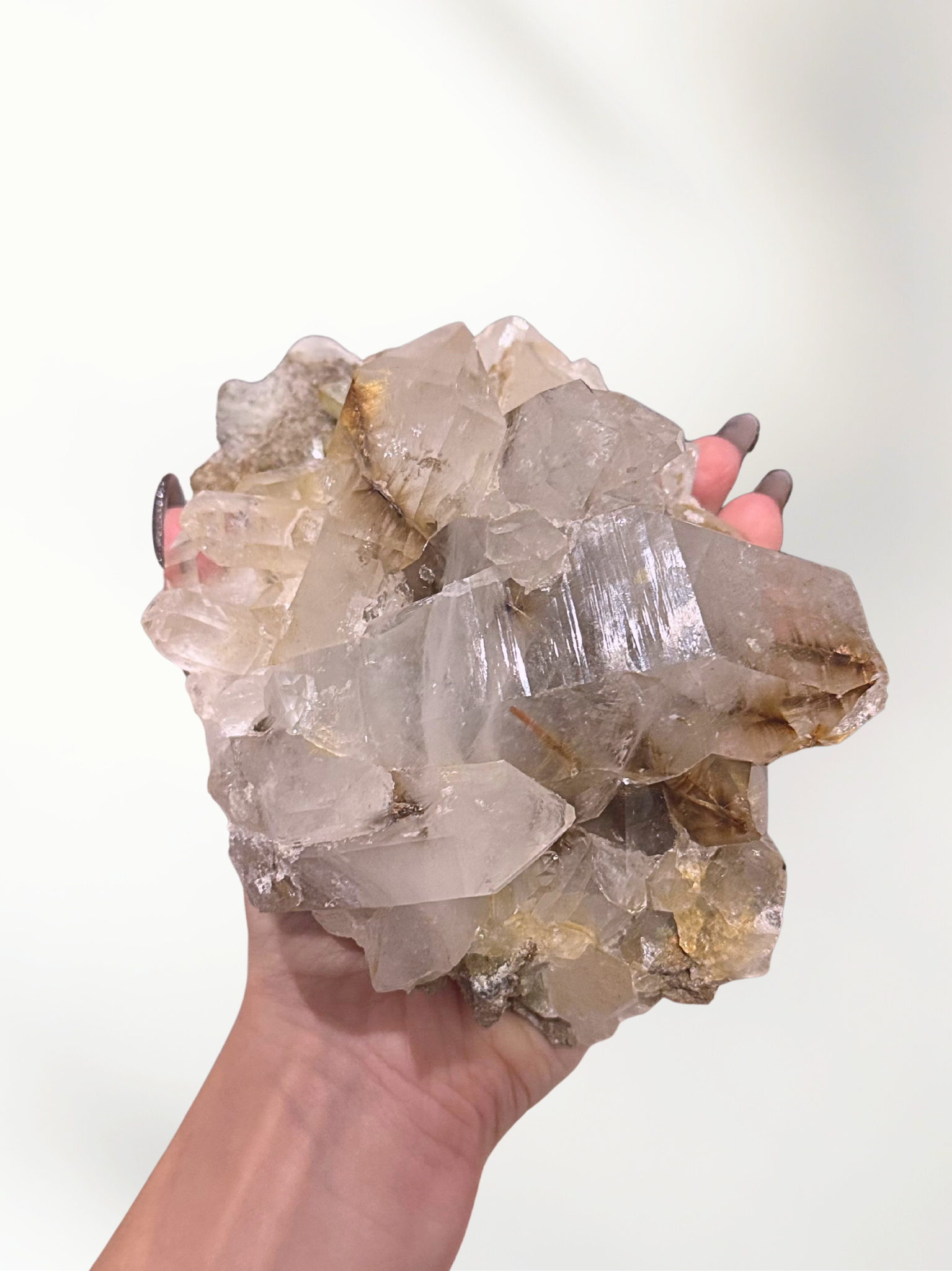 This large Rutilated Quartz cluster combines clarity and power in perfect balance. Each golden strand reflects light and purpose – a reminder to stay focused, grounded, and aligned with your goals.
